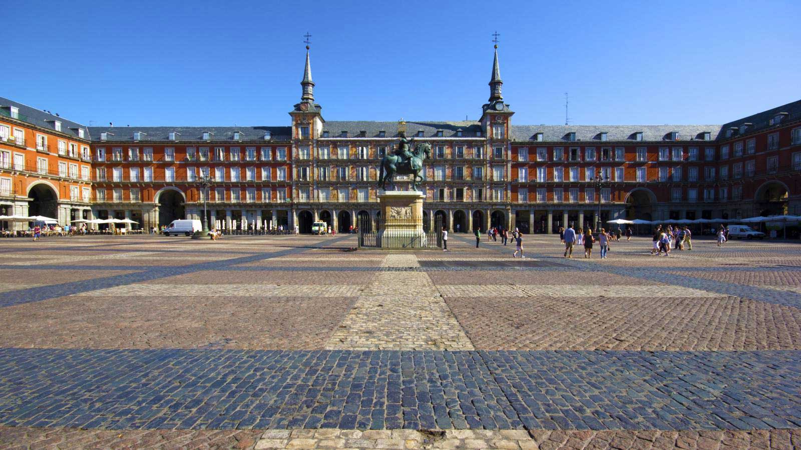 Cuando ya hayas estacionado por la zona de la plaza Mayor, dirígete al centro de la misma. Aquí se halla la estatua ecuestre del rey Felipe III de Austria y desde donde podrás admirar toda la plaza en su mayor esplendor. Si vienes para Navidad, te encontrarás con el tradicional mercado navideño y todos los domingos y festivos hay un mercado de filatelia y numismática.